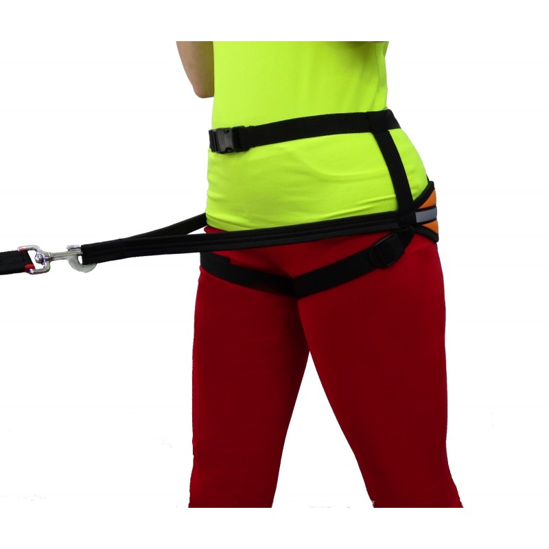 Eine extra weite Befestigungsschlaufe für den Hund (Befestigung am besten mittels Paniksnap) gleicht ungleichmäßige Seitenrucke aus und erlaubt einen weiterhin reibungslosen Bewegungsablauf.