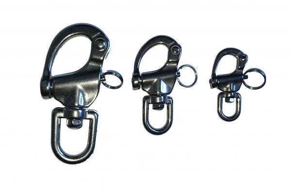 Paniksnap /Schnappschäkel/ Schnapphaken aus Edelstahl A4 poliert in 3 Größen